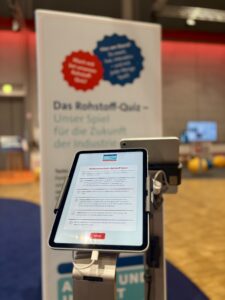 Mit unserem neu entwickelten Online-Spiel „Das Rohstoff-Quiz“, das von den Delegierten im Tandem auf Tablets an unserem Stand gespielt werden konnte, haben wir gleichzeitig einen Ausblick gegeben, wie unsere komplexen Themen und Inhalte auch so aufbereitet werden können, dass alle einen Zugang finden. Mit unserem Online-Spiel konnten die Delegierten auf spielerische Weise herausfinden, welche Rohstoffe für unsere Industrien von Bedeutung sind und welche wirtschaftlichen Abhängigkeiten bestehen. Dabei konnten sie ihr Wissen und strategisches Denken unter Beweis stellen. Die vielen positiven Rückmeldungen haben uns gezeigt, dass wir mit diesem Format auf dem richtigen Weg sind. Wir werden „Das Rohstoff-Quiz“ daher weiterentwickeln und als neues Tool auf unserer Website bereitstellen.